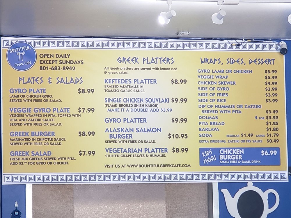 Whether you're here for a quick bite or planning a gathering, Bountiful Greek Cafe promises great food and a warm atmosphere.